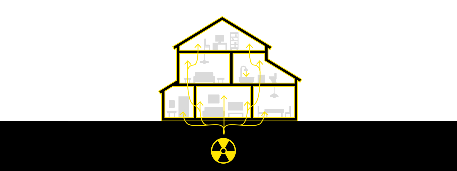 O radônio pode acumular-se em habitações vindas do solo, paredes, tetos ou bocas de água, filtrando-se através de fissuras e aberturas, afetando a segurança do lar.
